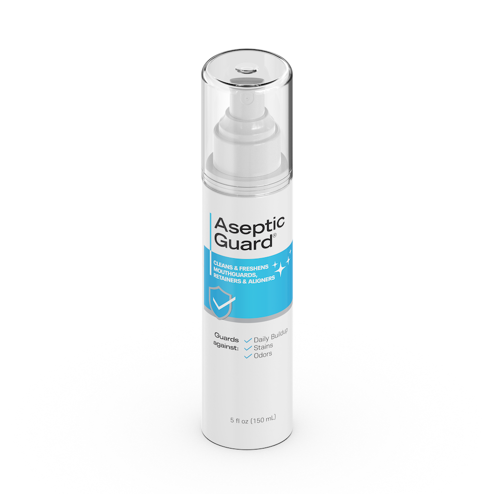 Aseptic Guard cleans and freshens mouthguards, retainers, and aligners.